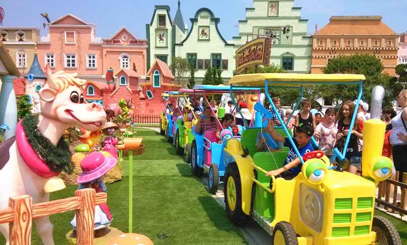 龍之盈游樂新款游樂設備陽光農場年初上市!陽光農場是龍之盈游樂針對田園景區設計的一款新型軌道小火車類游樂設備,本質上是一款軌道小火車類游樂項目,但它以農場為主題,造型包含了拖拉機、奶牛、可愛的農家院落所能包含的一切,富含了卡通氣息與陽光農場的味道。