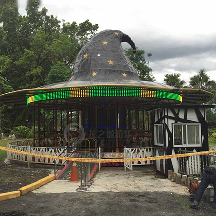旋轉(zhuǎn)木馬是游樂場里常見的一款兒童游樂設(shè)備,伸手大人與小孩的喜愛。由于技術(shù)的發(fā)展,傳統(tǒng)的旋轉(zhuǎn)木馬延伸出許多造型新奇的新型轉(zhuǎn)馬,今天就為大家介紹一款由龍之盈生產(chǎn),大陸與臺灣攜手設(shè)計的一款新型轉(zhuǎn)馬-飛天魔帽,采用了許多前沿的技術(shù),加入了許多新的玩法,接下來就隨著開啟一段奇妙之旅吧。