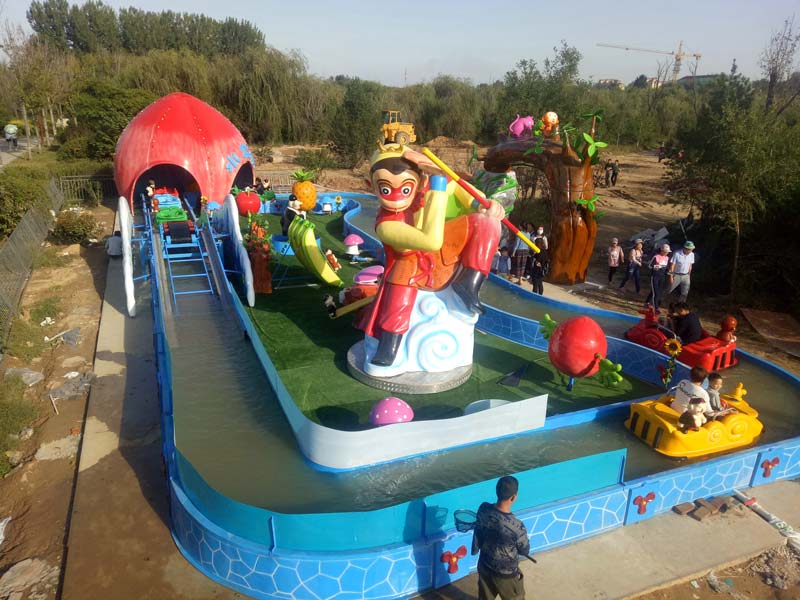 這是一款陸地漂流項目,利用周邊水道組成了環形的水上漂流,是游客暢想漂流的樂趣,水不會濺到游客身上,一年四季都可以運營;船上帶有激光槍,打中里邊的造型后,可以做出搞怪的動作或者發出好玩的聲音,互動性很強,更水上樂園里的其他游樂項目對比項目優勢非常明顯。