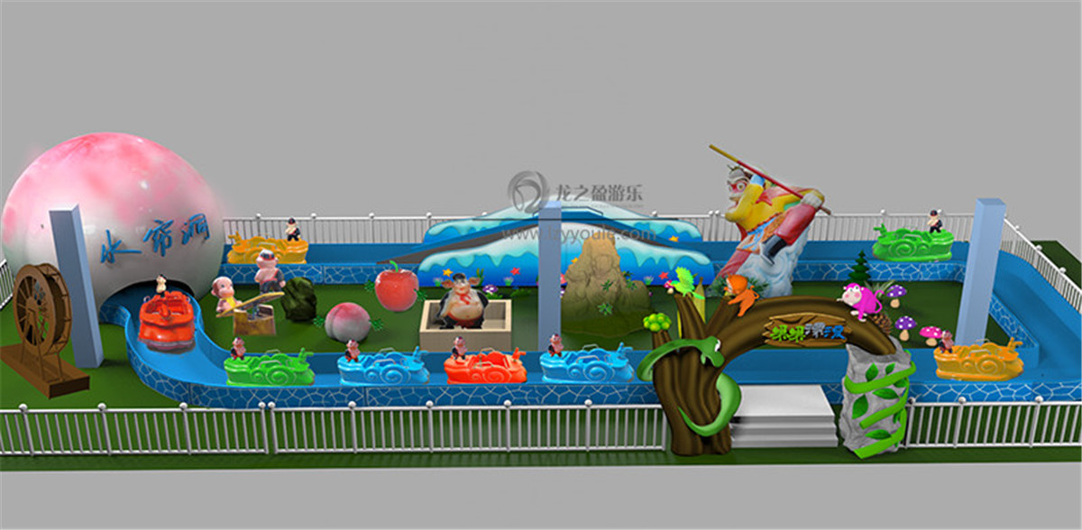 首先我們的水上游樂場地中要有能夠吸引孩子眼球并勾起他們探究的好奇心的游樂設備。龍之盈游樂有一款人物情景互動的水上游樂設備-花果山漂流、叢林探險,以孩子們熟知并未見過的花果山孫悟空為故事原型打造出在高仿真的同時又能兼具其卡通特色的兒童水上探險樂園。孫悟空是孩子們心中蓋世英雄般的存在,這樣的一款設備絕對是能夠吸引孩子的目光。