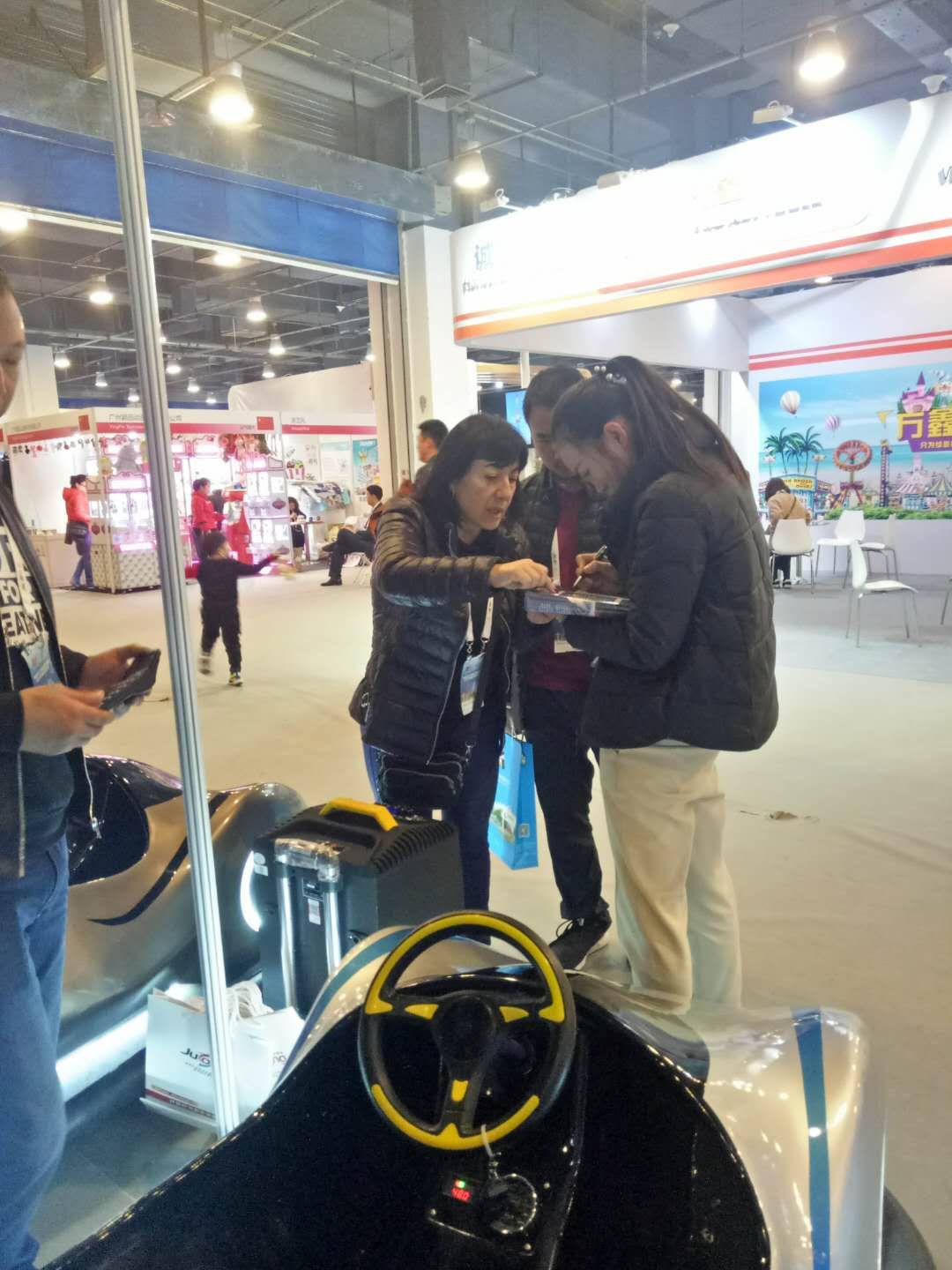 這家展臺的承辦方是龍之盈游樂設(shè)備有限公司,而備受關(guān)注的產(chǎn)品竟然是一輛碰碰車。當(dāng)我在這家公司的展臺旁觀看的這段時間里,來來往往詢問著輛碰碰車的人竟不下五十人,其中還包括部分外國友人。